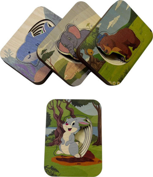 Ahşap Küçükten Büyüğe Sıralama Puzzle, Hayvan Figürlü, Montessori Uyumlu 4’lü Set