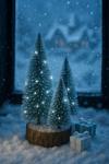 Yeni yıl ruhunu evinize taşıyan LED ışıklı 4’lü mini yılbaşı ağacı seti, rustik ahşap kaidesi ve kar efektli dallarıyla sıcak bir atmosfer oluşturur.