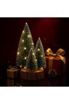 Kesene Ahşap Kütük Üzerinde 4’lü LED Işıklı Noel Kar Efektli Çam Ağaçları Seti 23 Cm - 18 Cm - 12 Cm -13 Cm