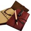Ahşap Kutulu Kahve Deri Defter ve Bakır Kalem