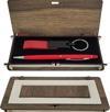 Ahşap Kutulu Kırmızı Anahtarlık Kalem Set Hediyelik