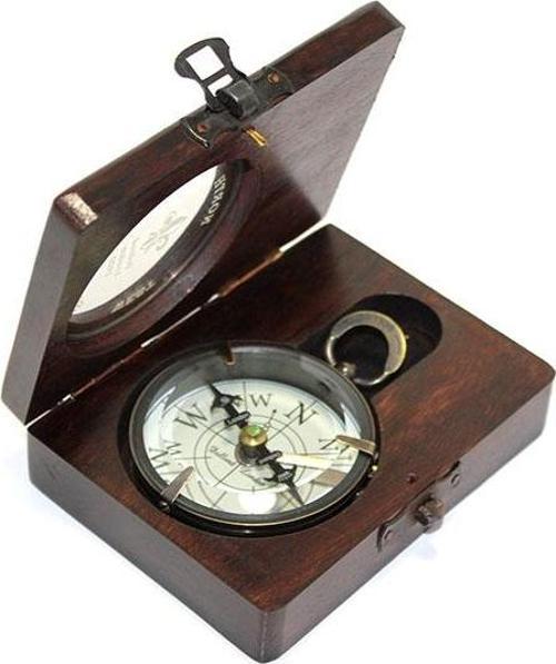 1 Adet Ahşap Kutulu Üzeri Desenli Pirinç Pusula