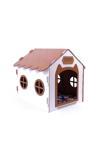 🏠 Ahşap Özel İsim Baskılı Dekoratif Kedi Evi - Beyaz-Ceviz