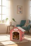 🏠 Ahşap Özel İsim Baskılı Dekoratif Kedi Evi - Pembe