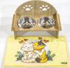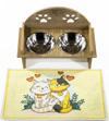 Gobypet Ahşap Özel İsim Baskılı, Oval Kedi Köpek Mama Su Kabı Standı, Metal Suluk, Kedi Köpek Halısı