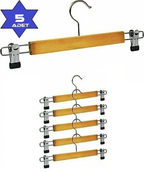 Ahşap Pantolon ve Etek Askısı Mandallı Klipsli Askı (5 Adet)