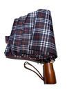 Eleven Market Ahşap Sap Ful Otomatik 10 Telli Lüx Kadın Şemsiyesi Ekose Desnli