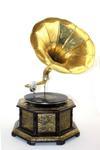 Ahşap Sekizgen Gramofon Taş Plak çalar Metal Kaplamalı
