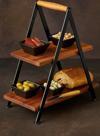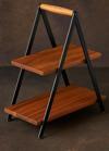 Taneli görünümlü iki akasya ağacından tepsi, siyah demir tepsilerin üzerine güzelce oturacak ve daha sonra birbirine bağlanarak geleneksel bir Hint kulübesini anımsatan güzel bir estetik sağlayacaktır. Her tepsi siyah demir stand tarafından desteklenir. Servis standının üst kısmında, doğal temayı sürdürür ve yerden tasarruf sağlarken akasya ağacından bir sap bulunur.
