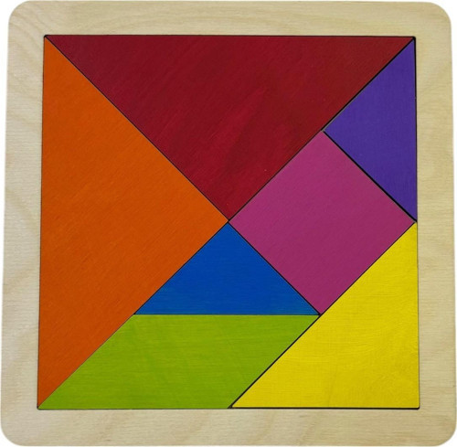 Ahşap Tangram, Renkli 7 Parça, Zeka ve Tasarım Puzzle, 18x18 cm Klasik Geometrik Yapboz