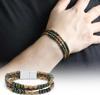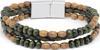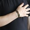 Ahşap Taşlı Sarı-Yeşil Renk Deri Ahşap Erkek Bileklik