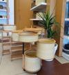 Ahşap Yuvarlak Tekerlekli Sebzelik 3 Katlı Yana Açılır Patates Soğan Sarımsak Krem