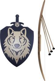 Ahtek Ahşap Oyuncak Seti 3'lü, Kurt Başlı Kalkan + Kılıç + Ok Yay Takımı 80 Cm.