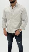 Erkek çizgi Desenli Uzun Kollu Pamuklu Keten Gömlek - Image 1