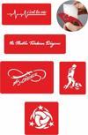 Geçici dövme ve baskı için Şablon Seti Dikkat: Bu ürüne Sprey veya Kına dahil değildir. Sadece Resimde Görünen desenler gönderilir. Bu ürün spreyle veya kına ile Geçici dövme yapmak isteyenler için üretilmiş bir desen setidir. Aynı zamanda duvar süslemesi, tişört baskısı veya ahşap gibi objelerin süslenmesinde baskı kalıbı olarak da kullanılabilir. Şablonlar plastik malzemeden üretildiği için defalarca kullanılabilir. (Ortalama 2-3 defa)
