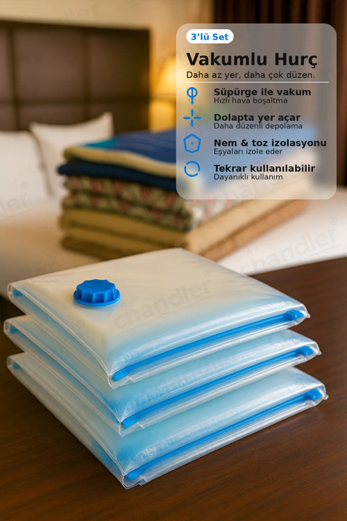 AİRLOCK (90x120 cm) Vakumlu Hurç 3'lü Şeffaf Giysi & Yorgan Saklama Torbası