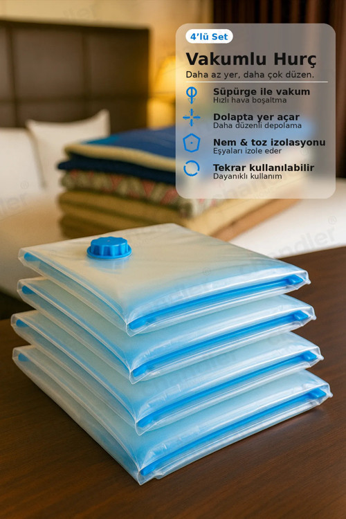 AİRLOCK (90x120 cm) Vakumlu Hurç 4'lü Şeffaf Giysi & Yorgan Saklama Torbası