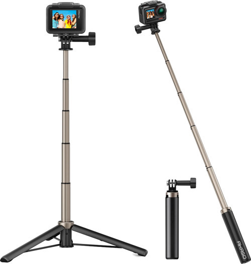 Kameranızın potansiyelinin ortaya çıkmasına katkı sağlayan Akaso tripod ve selfie çubuğu farklı uzunluk kademelerine göre ayarlanabilir. Hem elde tutulabilir hem de tripod olarak kullanılabilir.