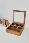 Mien Akasya Ahşap Kapaklı 5 Bölmeli Çay Kutusu 20,5x20,5x6,5 cm Şeffaf Kapaklı Çay ve Kahve Düzenleyici Kutu