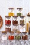 Atbyhome Akasya Silikonlu Kapaklı Borosilikat Cam Baharatlık - 250 ml Baharat Takımı + Etiket Hediyeli