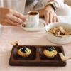 Ahşap sunum tabağının ölçüleri 18x10 cm kalınlığı ise 1.8 cm'dir.Ahşap sunumluk köşelerinde 4x2.5 cm altın kaplama kuşlar bulunmaktadır.Bölmeleleri sayesinde farklı türde gıdaların sunumunda rahatlıkla kullanabilirsiniz.