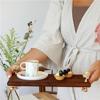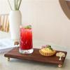 Ahşap sunum tabağının ölçüleri 30x14 cm kalınlığı ise 1.8 cm'dir.Ahşap yüzeyin köşelerinde 4.5x4 cm altın kaplama ginkgo aksesuar ve tabağın altlarında altın kaplama 1.8 cm çapında metal toplar bulunmaktadır.