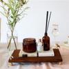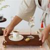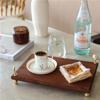 Ahşap sunum tabağının ölçüleri 30x19 cm kalınlığı ise 1.8 cm'dir.Ahşap yüzeyin köşelerinde 4.5x4 cm altın kaplama ginkgo aksesuar ve tabağın altlarında altın kaplama 1.8 cm çapında metal toplar bulunmaktadır.