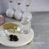 %100 mermer'den üretilen ve tamamen el üretimi olan bu özel seriyle , tüm yaşam alanlarınıza mermerin sıcaklığını ve estetikliğini yaşayabilirsiniz.Mermer sunum tabağının ölçüleri 20 cm kalınlığı ise 1 cm olup mermerin altlarında 2.5 cm çapında altın ayaklar bulunmaktadır.5 cm pirinç geyik kafası sayesinde hem estetik bir görüntü hem de kolay kullanım kolaylağı sağlamaktadır.