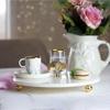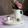 %100 mermer'den üretilen ve tamamen el üretimi olan bu özel seriyle , tüm yaşam alanlarınıza mermerin sıcaklığını ve estetikliğini yaşayabilirsiniz.Mermer sunum tabağının ölçüleri 28 cm kalınlığı ise 1 cm olup mermerin altlarında 2.5 cm çapında altın ayaklar bulunmaktadır.6x6 cm metal altın ginkgo aksesuar sayesinde hem estetik bir görüntü hem de kullanım kolaylığı sağlamaktadır.