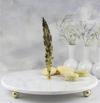 %100 mermer'den üretilen ve tamamen el üretimi olan bu özel seriyle , tüm yaşam alanlarınıza mermerin sıcaklığını ve estetikliğini yaşayabilirsiniz.Mermer sunum tabağının ölçüleri 28 cm kalınlığı ise 1 cm olup mermerin altlarında 2.5 cm çapında altın ayaklar bulunmaktadır.18.5 cm pirinç yzun tüy aksesuar sayesinde hem estetik bir görüntü hem de kullanım kolaylığı sağlamaktadır.