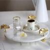 %100 mermer'den üretilen ve tamamen el üretimi olan bu özel seriyle , tüm yaşam alanlarınıza mermerin sıcaklığını ve estetikliğini yaşayabilirsiniz.Mermer sunum tabağının ölçüleri 30 cm kalınlığı ise 1 cm olup mermerin altlarında 2.5 cm çapında altın ayaklar ve yüzeyinde 3 adet 6x6 metal altın ginkgo aksesuarlar bulunmaktadır.Jeolojik oluşumlar gereği ürün fotoğraftaki ürüne göre renk ve desende farklılıklar içerebilir.