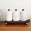 Mermer baharatlığın yüksekliği 12 cm çapı ise 9 cm\'dir Kapağın üzerinde 3 cm ahşap kulp bulunmaktadır. Set içinde 3 adet baharatlık bulunmaktadır.