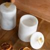 Mermer baharatlığın yüksekliği 12 cm çapı ise 9 cm'dir Kapağın üzerinde 2.5x2 cm metal altın kaplama aksesuar bulunmaktadır.