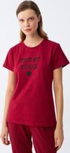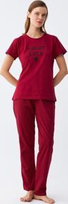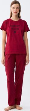 Bordo renkli kısa kollu üst ve desenli alt takım
