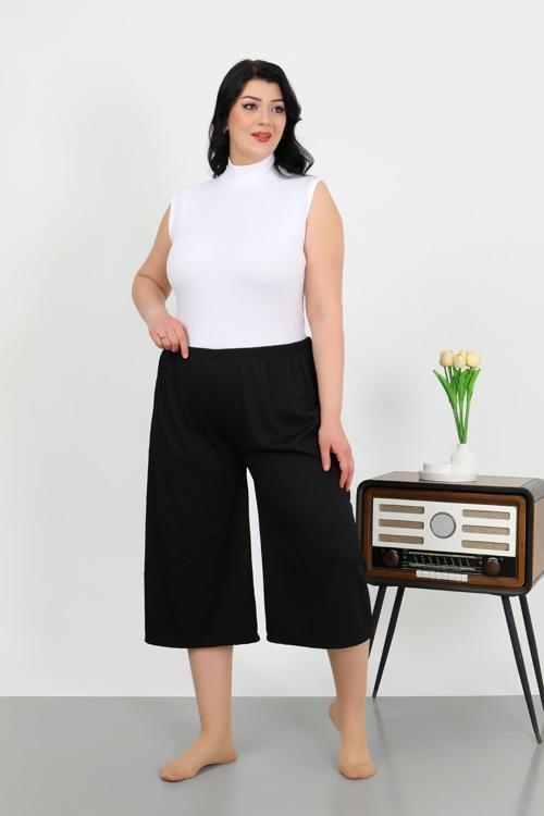 Akbeniz'in siyah renkli büyük beden bürümcük kaprisi ile tarzınızı konuşturun! Akbeniz Kadın Büyük Beden Bürümcük Kapri 27561Siyah, şıklığı ve rahatlığı bir arada sunar. Akbeniz'in kalitesiyle öne çıkan bu ürün, tarzınıza tarz katmak için ideal.