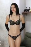 Akbeniz Kadın Desteksiz İnce Süngerli Pul İşlemeli Sütyen Takım 3903 Kahve