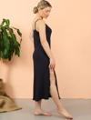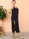 Kadın İp Askılı Yırtmaçlı Uzun Lacivert Gecelik 90119