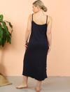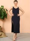 Akbeniz Kadın İp Askılı Yırtmaçlı Uzun Lacivert Gecelik 90119