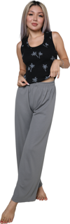 Akbeniz Kadın Kalın Askılı Body Bol Paça Pantolon 2`li Takım Siyah 4217