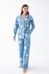 🌙 Akbeniz Kadın Mavi Yıldız Desenli Düğmeli Pamuklu Pijama Takımı