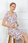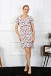 Kadın Penye Kısa Kol Düğmeli Ekru Tunik Gecelik 13104