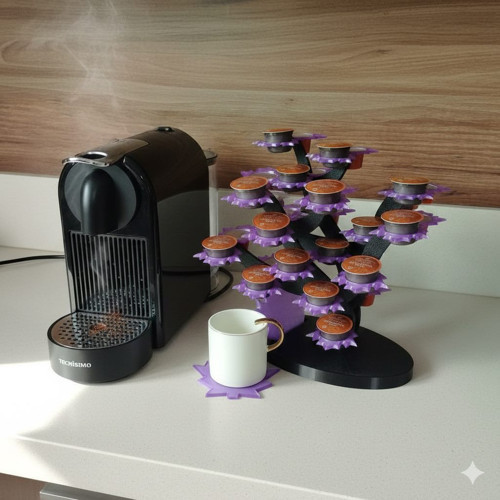 Mottopi Akçaağaç Dekoratif Kahve Kapsül Standı ve 2 Adet Bardak Altlığı-Çift Taraflı Kullanım-37 mm,46 mm ve 58 mm Kapsül Uyumlu-Mor