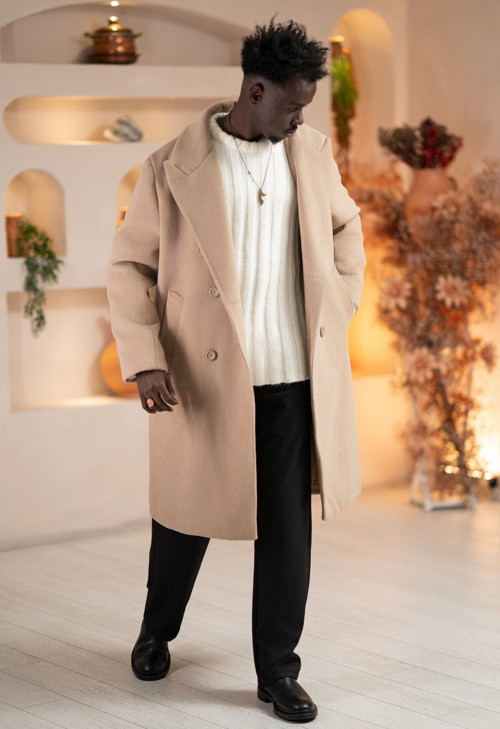 İtalyan Geniş Yaka Oversize (Bol Kesim) Salaş Uzun Kaban