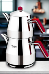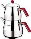 Arsimo Akdeniz Serisi Bakalit Kırmızı Kulp Jumbo Boy Çelik Çaydanlık Takımı | Kırmızı Jumbo Boy Çaydanlık
