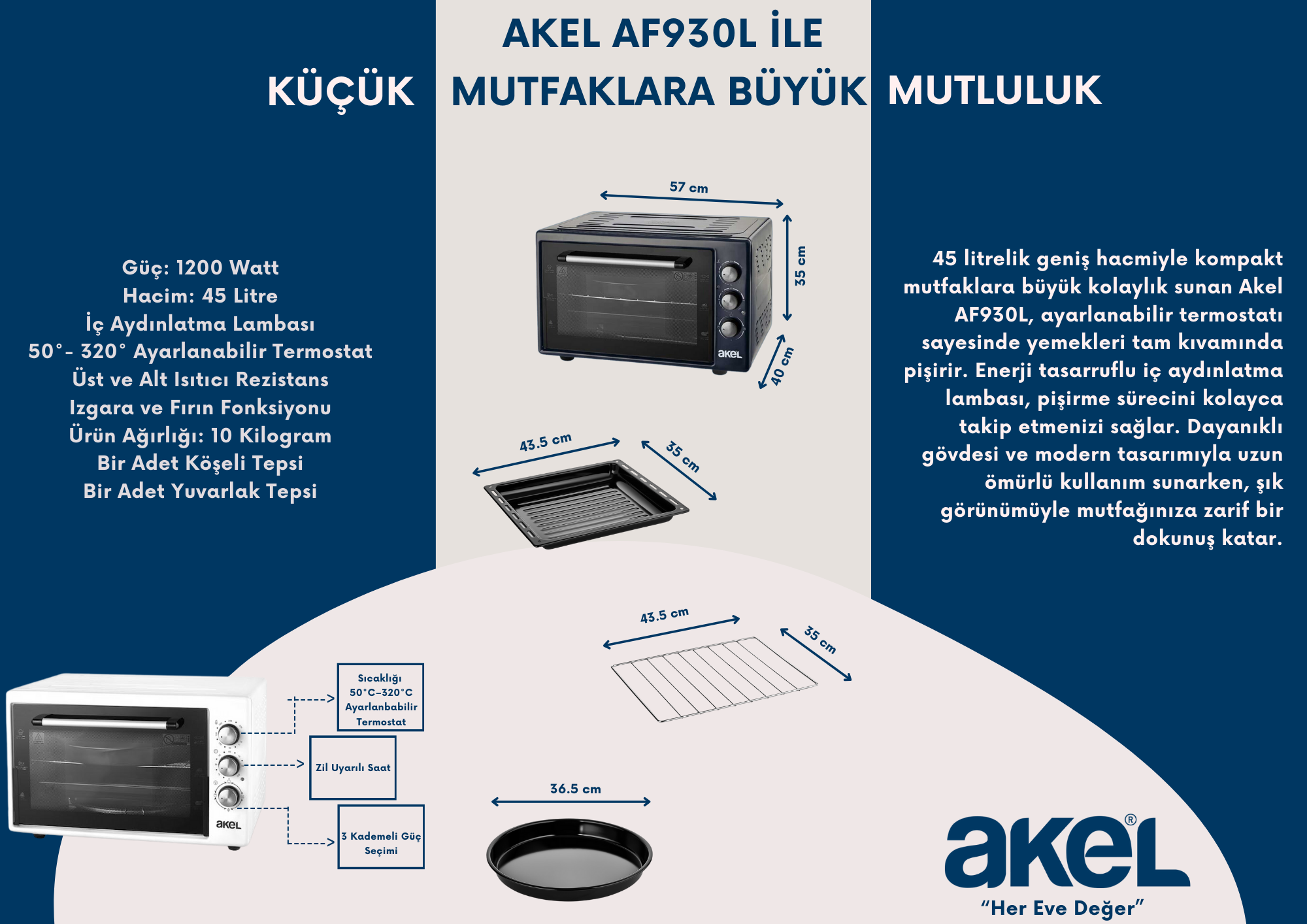 AKEL AF930L 45 Litre Midi Fırın – Gri