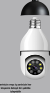 Güvenlikte tam kontrol artık çok daha kolay! Akıllı Duy Kamera 360 Derece Dönebilir ve PTZ Teknolojili, gelişmiş izleme özellikleriyle ev veya iş yerinizin her köşesini görüntülemenizi sağlar.Kameranın PTZ (Pan-Tilt-Zoom) sistemi, hem yatay hem dikey hem de çapraz hareket edebilme özelliği sayesinde tüm açıları kapsar.360 derece dönebilme yeteneği, kör nokta bırakmadan tam kapsamlı güvenlik sunar. Uzaktan kontrol edilebilir yapısı, cep telefonunuz veya tabletiniz üzerinden anında yön değiştirmenize olanak tanır.Kolay kurulum sağlayan duy tipi tasarımı sayesinde ekstra kablo veya adaptör kullanmadan, kamerayı birkaç saniyede aktif hale getirebilirsiniz.Yüksek çözünürlüklü sensörü, net ve canlı görüntüler sunar. Gece görüş modu, düşük ışıkta bile güvenliği kesintisiz hale getirir. Ayrıca hareket algılama sistemi, olağandışı durumlarda size anında uyarı gönderir.Dahili mikrofon ve hoparlör sayesinde çift yönlü ses iletişimi mümkündür. Hem ortamı dinleyebilir hem de uzaktan konuşabilirsiniz.Enerji tasarruflu çalışma prensibiyle, uzun ömürlü kullanım sağlar.Modern güvenlik çözümleri arasında fark yaratan Akıllı Duy Kamera 360 Derece Dönebilir ve PTZ Teknolojili, evinizdeki huzurun anahtarı olacak.