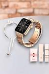 2000-3000 mAh Batarya: Gün boyu kesintisiz kullanım sunan yüksek kapasiteli batarya ile şarj derdi olmadan tüm özellikleri özgürce kullanabilirsiniz. Modern Rose Gold Tasarım: Şık ve zarif rose gold kasa, hem spor hem de klasik kombinlerle uyum sağlayarak tarzınızı tamamlar. Adımsayar Özelliği: Günlük aktivitelerinizi takip edin, atılan adımları ve kat edilen mesafeyi izleyerek hareketliliğinizi artırın. Uyku Takibi: Uyku düzeninizi analiz eder, sağlıklı ve kaliteli bir uyku için öneriler sunar. Nabız Ölçer: Kalp atış hızınızı gerçek zamanlı izleyerek sağlığınızı her an kontrol altında tutun. Entegre GPS: Hassas konum takibi ile rotanızı belirleyin ve navigasyon ihtiyaçlarınızda kolaylık sağlayın. Sesli Görüşme: Telefonunuza dokunmadan çağrılarınızı cevaplayarak iletişimde kalın. Titreşim Bildirimleri: Gelen çağrılar, mesajlar ve diğer bildirimleri kaçırmamanız için titreşim ile uyarı.Günlük kullanımda ihtiyacınız olan tüm özellikleri bir arada sunan bu akıllı saat, hem işlevselliği hem de estetik tasarımıyla öne çıkar.