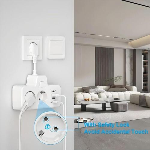6-in-1 çoklu priz: anahtarlı priz 2 AC prizi, 4 USB (5V/2.4A) ile 6 cihazı aynı anda kontrol edebilir, USB toplam çıkışı (5V/3.4A), maksimum güç 3250W (13A/250V), sadece standart Alman prizine takın ve birden fazla cihazla karışıklık olmadan cihazı hızlıca bağlayın ve bobin karışıklığı olmadan