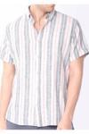 Klasik ve şık bir görünüm için lacivert renkteki ince çizgili tasarım; Rahat ve nefes alabilen dokuma kumaş yapısı, gün boyu konfor sağlar; Pratik kullanım için düğmeli kapama özelliği ile kolay giyip çıkarma imkanı sunar; Kısa kollu tasarımı, sıcak havalarda serinlik ve rahatlık sağlar; %70 pamuk ve %30 keten karışımı materyal bileşeni, yumuşak dokusuyla teninize nazikçe dokunur; Düz kesimi sayesinde modern ve zamansız bir stil oluştururken slim fit kalıbı vücut hatlarınıza mükemmel uyum sağlar; Gömlek yaka detayı ile resmi ve günlük kombinlerinizde şıklığı yakalamanızı kolaylaştırır;