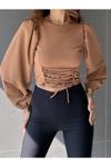 İç göstermeyen yapısıyla rahatlıkla tercih edebileceğiniz bu crop bluz, günlük kullanım için idealdir.